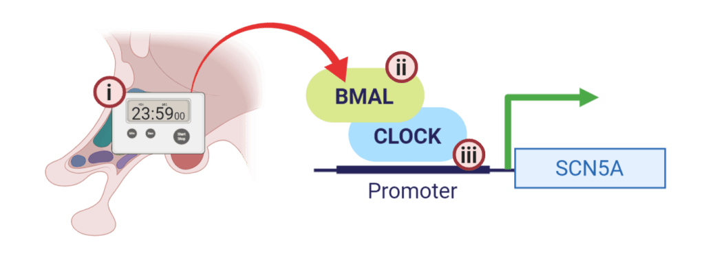 The tiers of variant discovery for chronomic medicine. Contributions may be found from: i) Variants underlying chronotype, ii) variants in clock genes, iii) variants in cis-element binding sites for clock genes in promoters of rhythmic genes e.g. SCN5A.